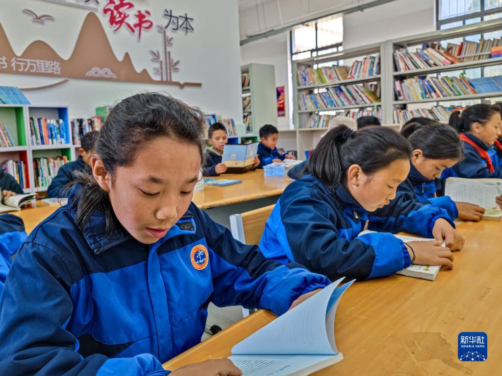 3月31日,下察隅鎮(zhèn)的孩子們在開放書吧閱讀書籍。新華社記者 王澤昊 攝