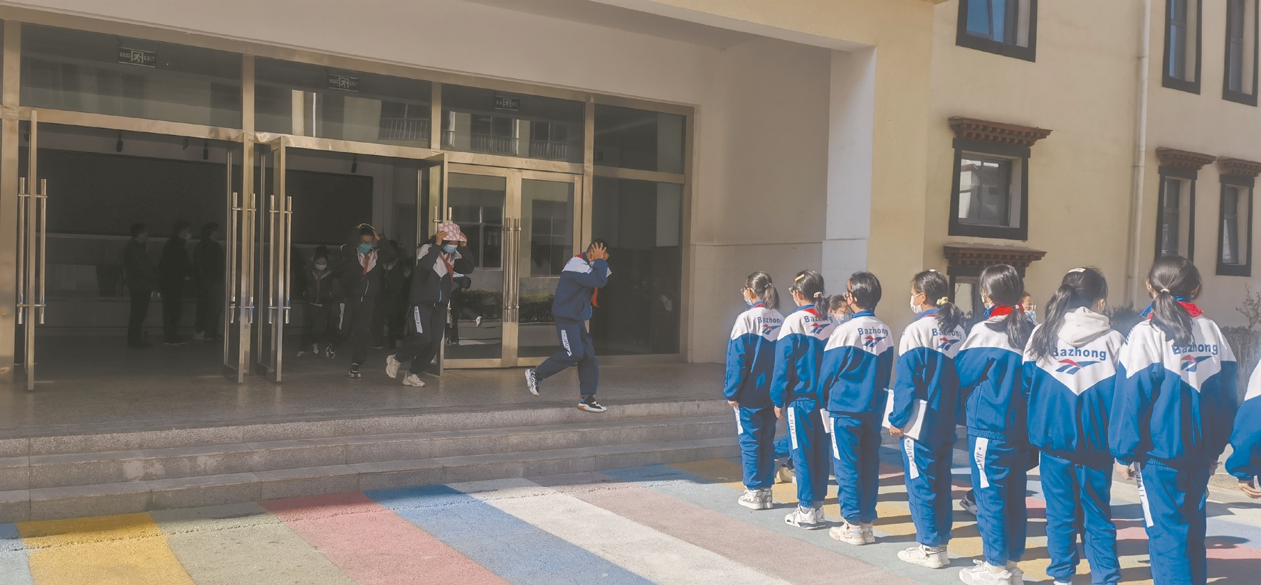 圖為在“地震科普、攜手同行”主題活動(dòng)中,拉薩市第八中學(xué)師生進(jìn)行地震應(yīng)急疏散演練。 拉薩融媒記者 楊 璐攝