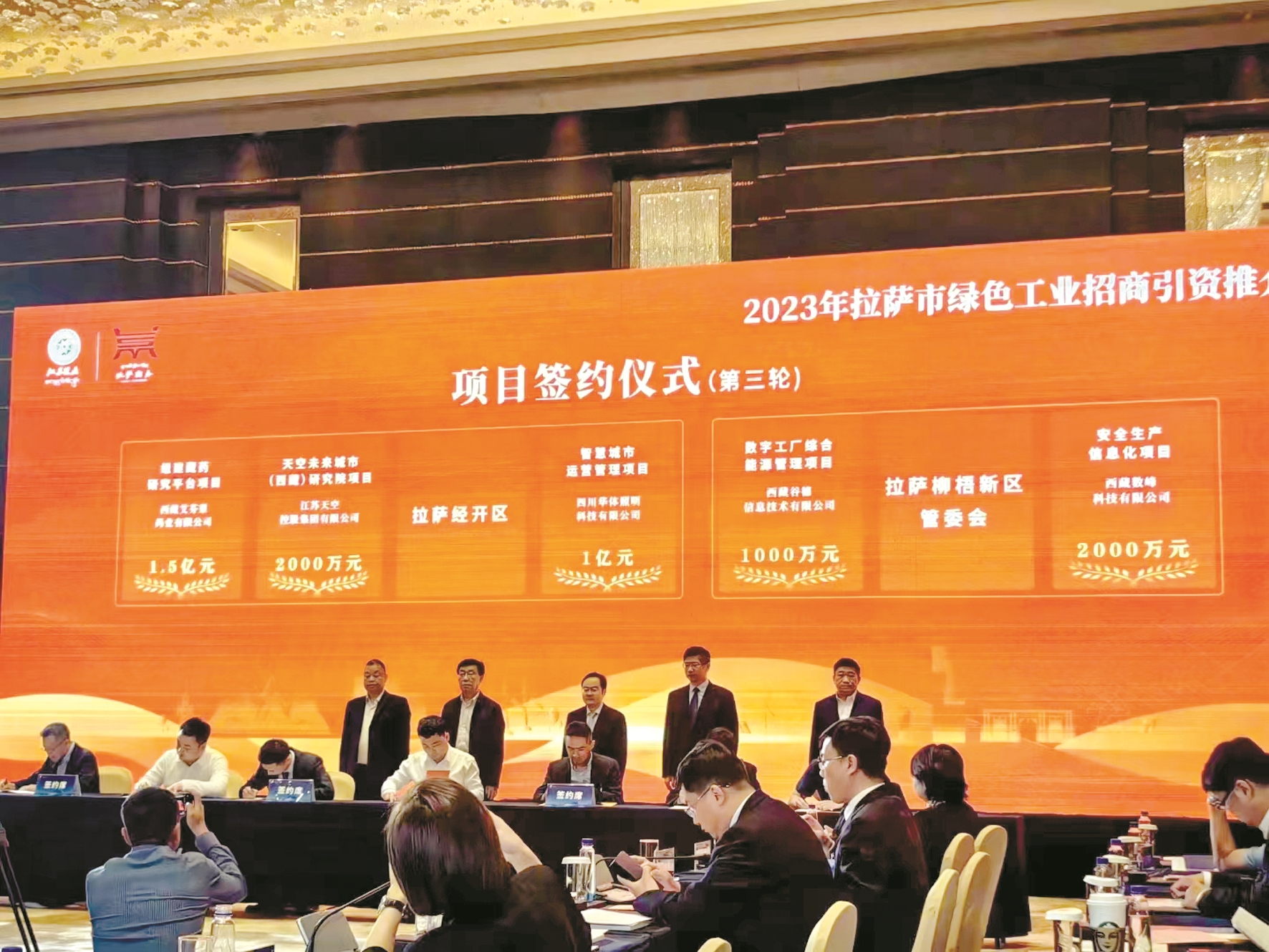 4月17日,2023年拉薩市綠色工業(yè)招商引資推介會(huì)暨項(xiàng)目簽約儀式在南京舉行,活動(dòng)由拉薩市人民政府、西藏自治區(qū)招商局、江蘇援藏前方指揮部主辦,拉薩市商務(wù)局、拉薩經(jīng)濟(jì)技術(shù)開發(fā)區(qū)聯(lián)合承辦。江蘇省商務(wù)廳副廳長(zhǎng)倪海清、江蘇省工業(yè)和信息化廳二級(jí)巡視員宋旭東、西藏自治區(qū)招商局副局長(zhǎng)次旦格來(lái)應(yīng)邀出席活動(dòng)并致辭,簽約企業(yè)代表、拉薩市各縣(區(qū))、經(jīng)濟(jì)功能園區(qū)分管招商工作負(fù)責(zé)人以及知名企業(yè)代表近140余人參加推介會(huì)。本次推介會(huì)共簽約項(xiàng)目15個(gè),協(xié)議投資達(dá)32.3億元。