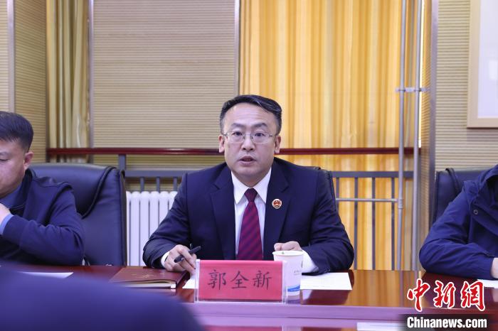 圖為青海省人民檢察院黨組成員、副檢察長郭全新致辭?!∏嗪J∪嗣駲z察院供圖