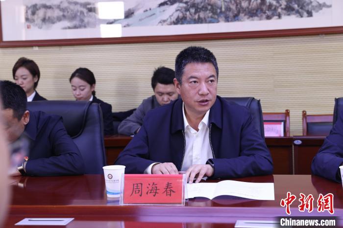 圖為西寧城市職業(yè)技術(shù)學院黨委書記周海春發(fā)言?!∏嗪J∪嗣駲z察院供圖