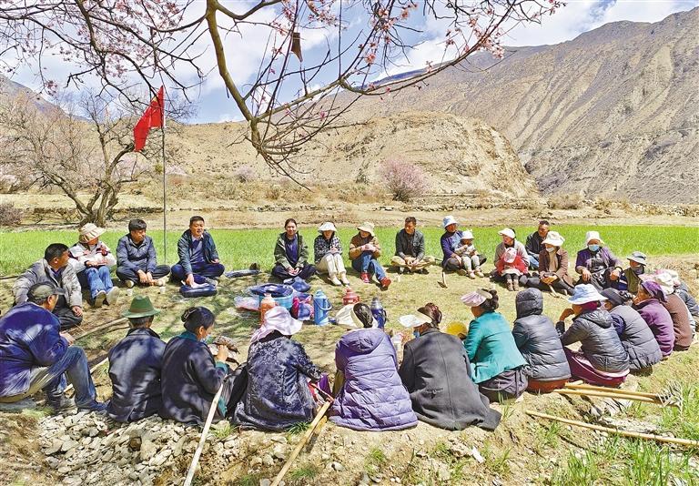 四月的高原陽光明媚,處處鶯歌燕舞。在拉薩市林周縣邊角林鄉(xiāng)當(dāng)杰村,村黨支部副書記、宣講員索朗仁青把宣講搬到了植樹造林現(xiàn)場(chǎng),與村民席地而坐,宣講黨的二十大精神。[詳細(xì)] -