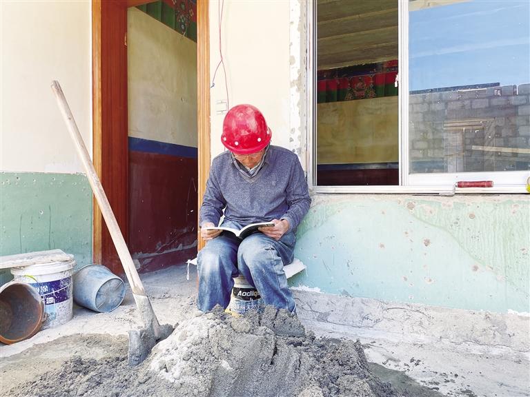 閑暇時(shí),朔風(fēng)在工地上看書(shū)。文/圖 記者 趙越