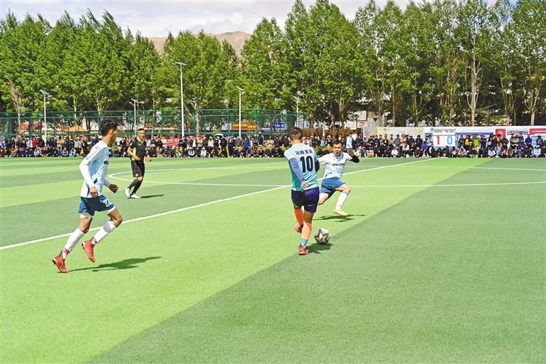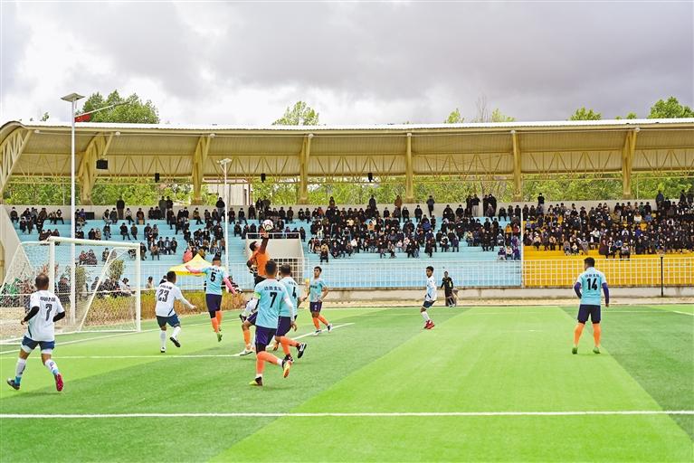 圖為日喀則市首屆“珠峰杯”足球聯賽決賽現場。記者 扎西頓珠 攝
