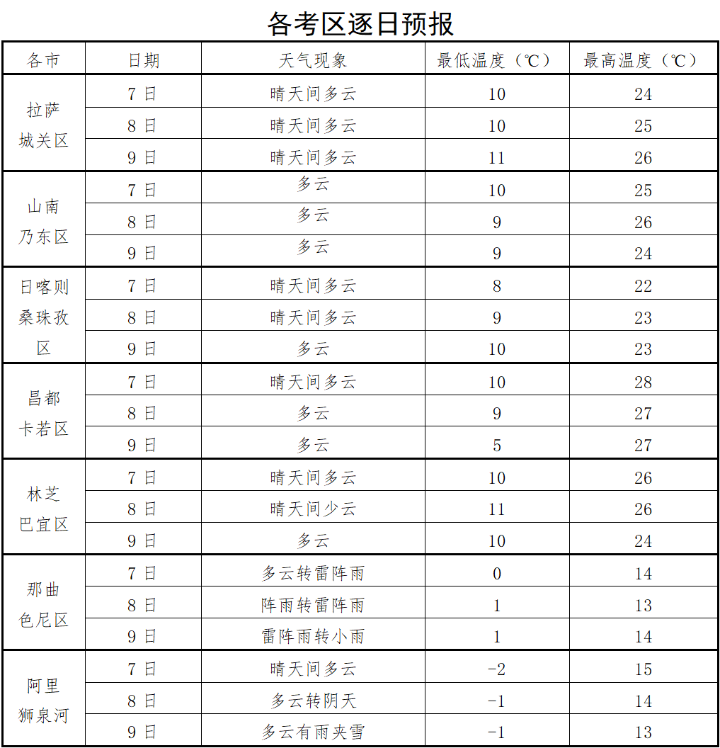 2023年高考期間西藏自治區(qū)天氣預(yù)報