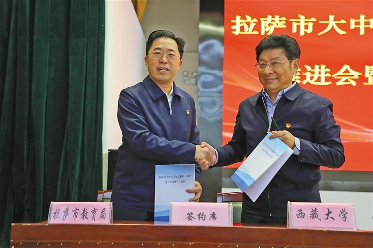 拉薩市教育局和西藏大學(xué)馬克思主義學(xué)院簽訂合作協(xié)議。