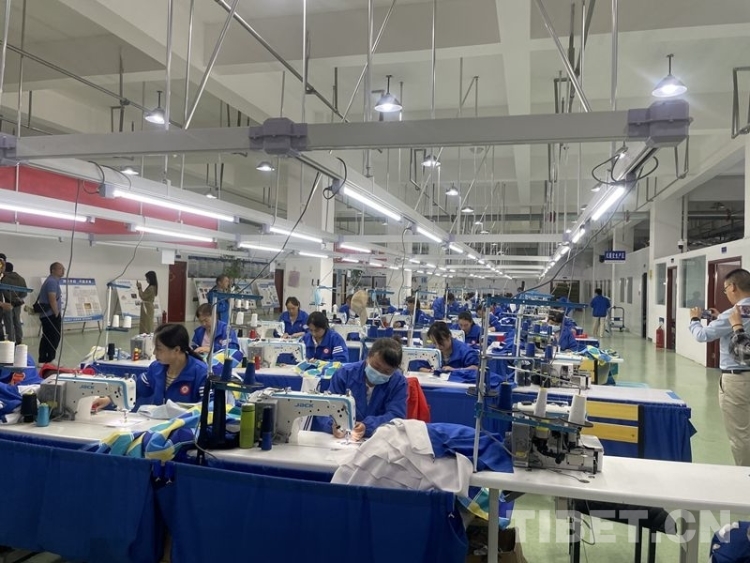 中國(guó)西藏網(wǎng)訊 6月28日,位于青海省海東市民和回族土族自治縣的青海洺欽和服飾制作車間內(nèi),電動(dòng)縫紉機(jī)的噠噠聲不絕于耳,穿著藍(lán)色制服的工人正專注地趕制一批中學(xué)校服。