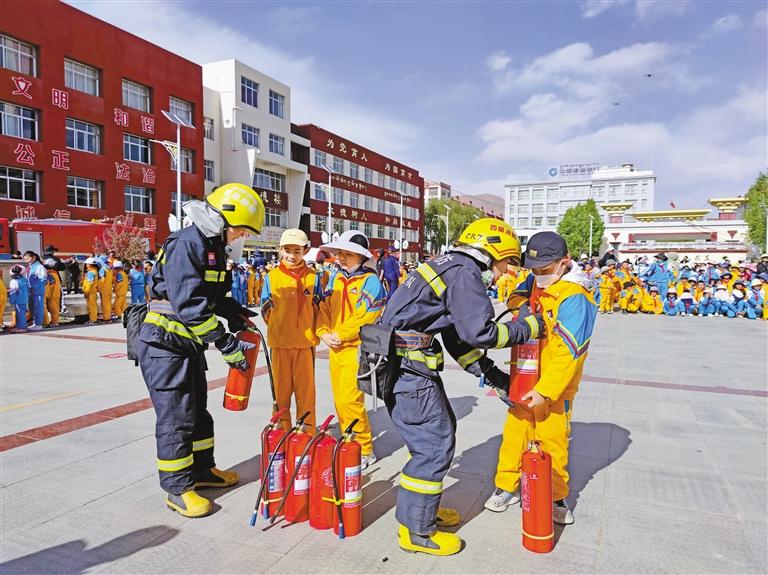 近日,日喀則市減災(zāi)委員會在日喀則市小學(xué)開展了“防災(zāi)減災(zāi)進(jìn)校園”主題活動。活動中,消防指戰(zhàn)員向師生詳細(xì)講解了消防裝備用途和用法,并組織師生開展消防應(yīng)急疏散演練。沉浸式、互動式、體驗式的防災(zāi)減災(zāi)宣傳,進(jìn)一步增強了師生消防安全意識,提高了應(yīng)急避險、自救互救能力。
