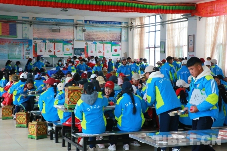 圖為當雄縣中學的學生在吃午餐 攝影:旦曲