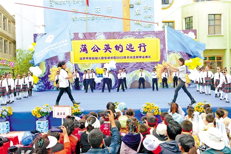 近日,拉薩市實驗幼兒園東城分園開展了以“蒲公英的遠(yuǎn)行”為主題大班畢業(yè)典禮,孩子們在一句句祝福聲中,帶著對未來的憧憬和向往揚帆起航。
