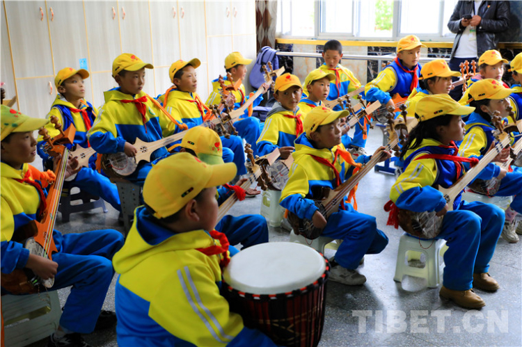 圖為西昌鄉(xiāng)小學(xué)學(xué)生在學(xué)習(xí)傳統(tǒng)樂(lè)器扎木念 攝影:王茜