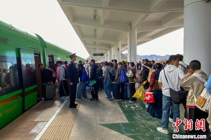 圖為暑運期間,旅客在日喀則火車站搭乘高原復興號動車組出行。日喀則火車站 供圖