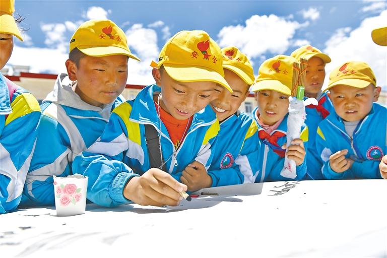 多年來,娘熱鄉(xiāng)完全小學(xué)充分利用課堂教育,先后推出藏戲、藏文書法等特色教育,引導(dǎo)學(xué)生了解、繼承和發(fā)揚(yáng)優(yōu)秀傳統(tǒng)文化,先后獲得了“第二批全國中小學(xué)中華優(yōu)秀文化藝術(shù)傳承學(xué)校”“自治區(qū)級非遺示范基地”等榮譽(yù)稱號。