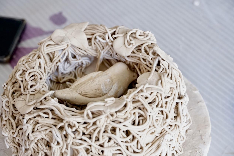 圖為特殊學(xué)校一位聾啞學(xué)生的陶藝作品《溫馨的鳥(niǎo)巢》。