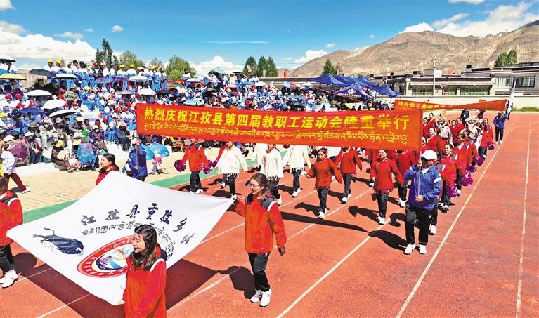 運(yùn)動(dòng)會(huì)開(kāi)幕式上,各方隊(duì)入場(chǎng)場(chǎng)景。記者 扎西頓珠 攝