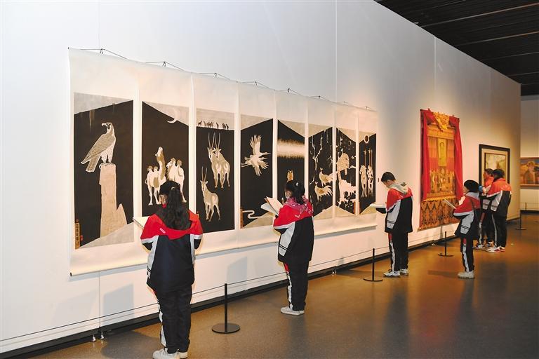 圖為11月16日,拉薩阿里河北完全中學繪畫社團的孩子們走進西藏美術(shù)館參觀臨摹藝術(shù)畫作。記者 次仁平措 丹增群培 攝