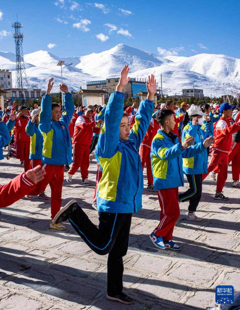 斯曲卓瑪(前)在做課間操(11月10日攝)。新華社記者 孫非 攝