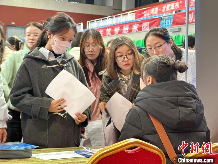 圖為招聘人員為大四畢業(yè)生介紹相關(guān)崗位信息。劉洋 攝