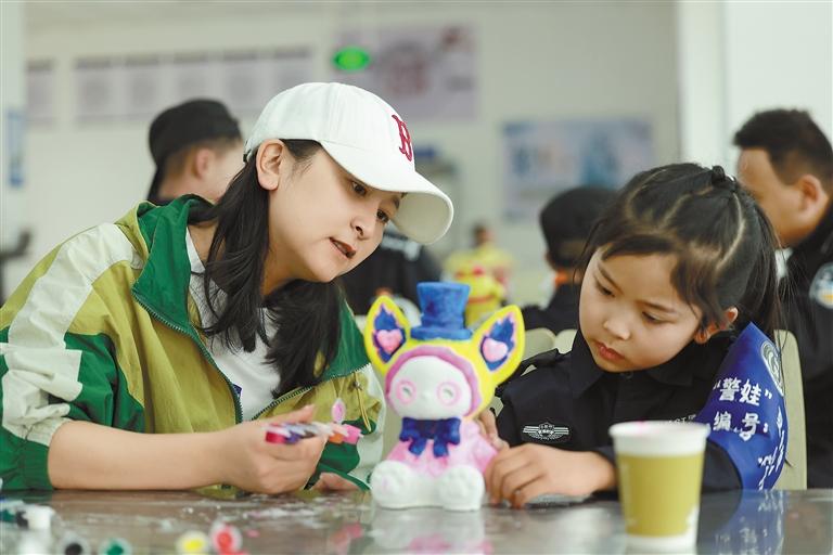圖為在親子互動(dòng)環(huán)節(jié),警娃和她的母親在用心涂畫石膏玩偶。通訊員 魏東升 攝