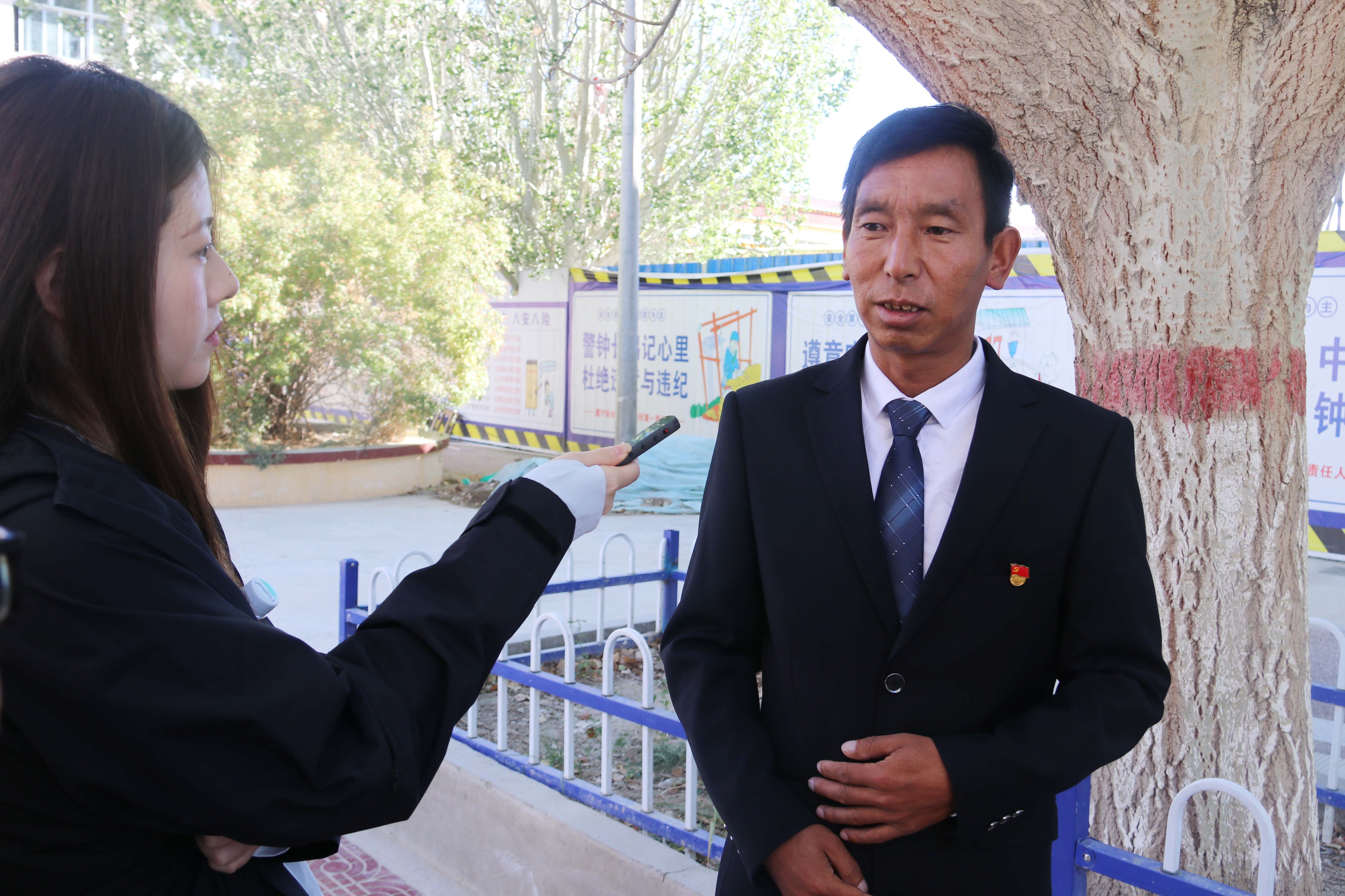 校長(zhǎng)加措正在接受記者采訪。
