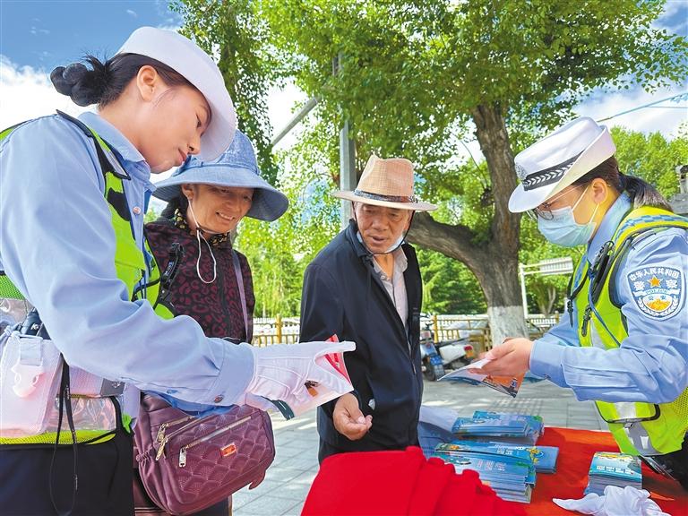 為增強(qiáng)市民群眾的道路交通安全意識(shí),預(yù)防和減少道路交通事故發(fā)生,日前,拉薩市公安局交警支隊(duì)城西大隊(duì)在宗角祿康公園開(kāi)展道路交通安全宣傳活動(dòng),將交通安全知識(shí)帶到群眾身邊。