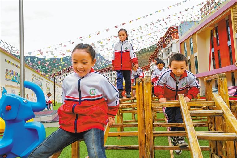 圖為昌都市邊壩縣第一小學(xué)學(xué)生在課間快樂地玩耍。記者 丹增群培 攝