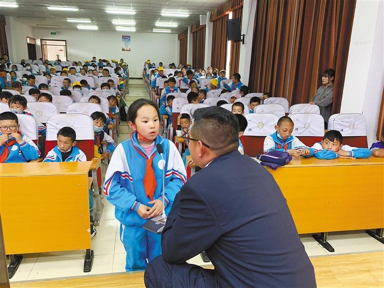 圖為山南市人民檢察院檢察官在山南市第一小學開展法律知識宣講,并與學生互動交流。記者 巴桑旺姆 攝