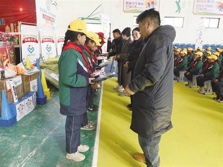 近日,隨著一輛輛滿載體育器材的卡車緩緩駛?cè)肴湛t市三所學(xué)校,送去了乒乓球拍、羽毛球拍、籃球、足球、跳繩、拔河繩等各類體育器材大禮包。由西藏自治區(qū)體育彩票管理中心(以下簡(jiǎn)稱“西藏體彩”)發(fā)起的“公益體彩 快樂(lè)操場(chǎng)”愛心捐贈(zèng)活動(dòng)正式拉開帷幕。
