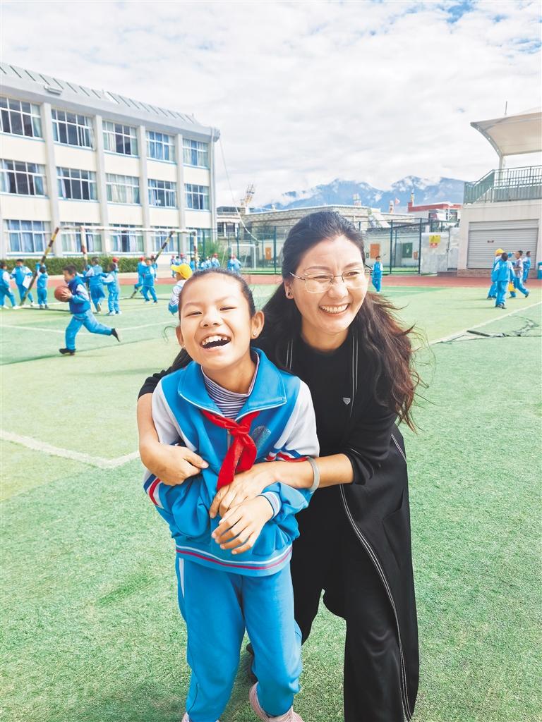 圖為卓瑪與學(xué)生在一起快樂互動(dòng)。
