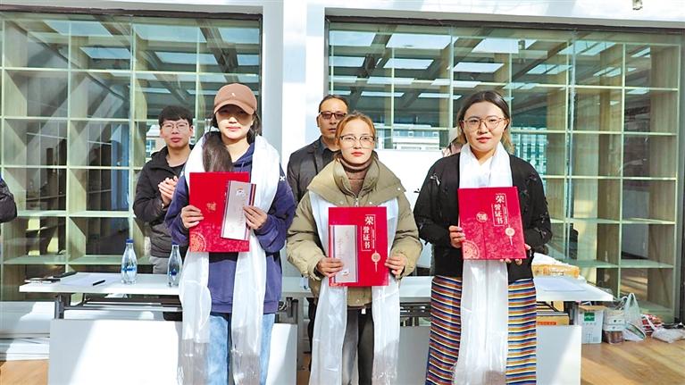 圖為當雄縣委組織部為大學(xué)生志愿者們頒發(fā)實踐證明。