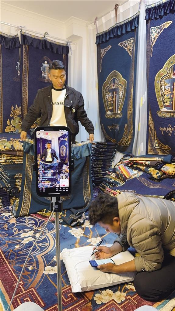 此后,為提升直播效果,格桑平措團隊認真總結(jié)經(jīng)驗教訓(xùn),不斷學(xué)習(xí)直播技巧,深入研究產(chǎn)品賣點,從吸引觀眾、介紹產(chǎn)品到處理售后問題,每個環(huán)節(jié)都認真鉆研。同時,他們精心策劃每一場直播,不僅詳細介紹產(chǎn)品,還講述產(chǎn)品背后的文化故事,力求講解生動有趣,吸引了不少粉絲關(guān)注。在一次次的嘗試和努力下,藏式門簾在電商平臺上逐漸打開知名度,銷量穩(wěn)步增長,突破了2000單。面對取得的銷售成績,格桑平措也在不斷思考:“直播帶貨不僅拓寬了產(chǎn)品銷路,更重要的是,通過直播我們能與消費者實時互動,了解他們的需求和反饋,從而持續(xù)優(yōu)化產(chǎn)品和服務(wù),讓我們的創(chuàng)業(yè)之路走得更穩(wěn)?!背辈ж浲猓裆F酱雸F隊還借助短視頻平臺和社交媒體平臺,發(fā)布產(chǎn)品信息,制作精美的宣傳視頻,吸引了更多潛在客戶的目光。