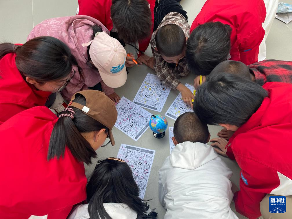 2024年8月31日,張晶晶帶領(lǐng)西部計(jì)劃志愿者到兒童福利院和孩子們做益智活動。(受訪者供圖)
