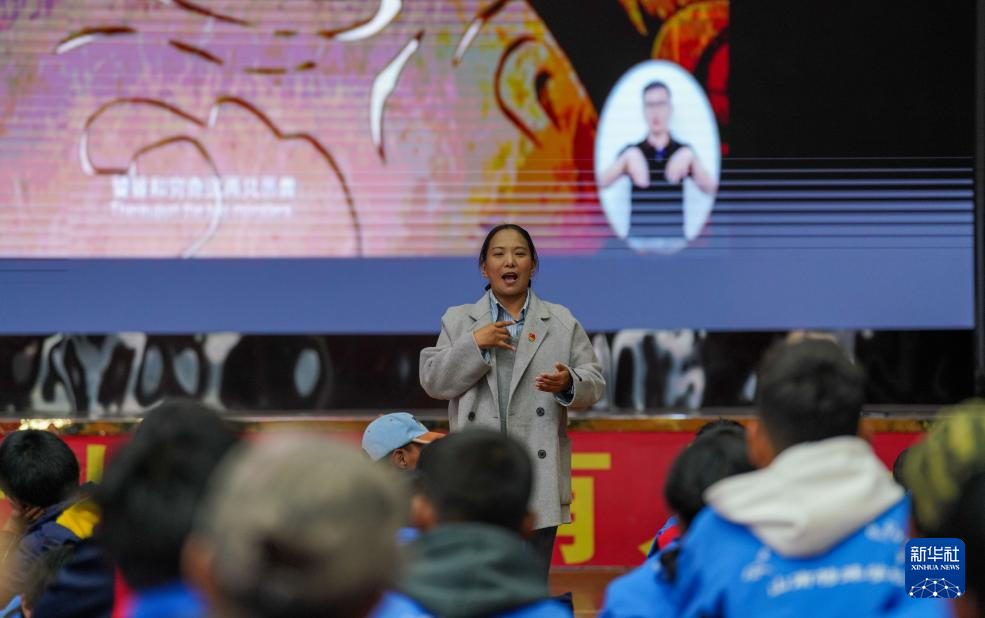 4月17日,西藏山南市特殊教育學(xué)校手語老師向聽障孩子們介紹當(dāng)日活動(dòng)內(nèi)容。新華社記者 晉美多吉 攝