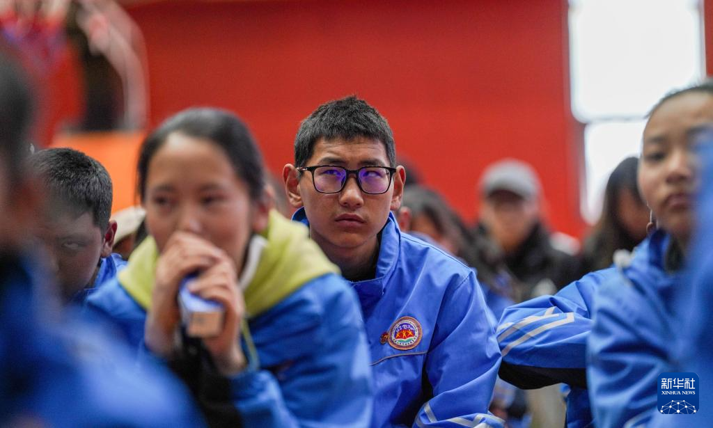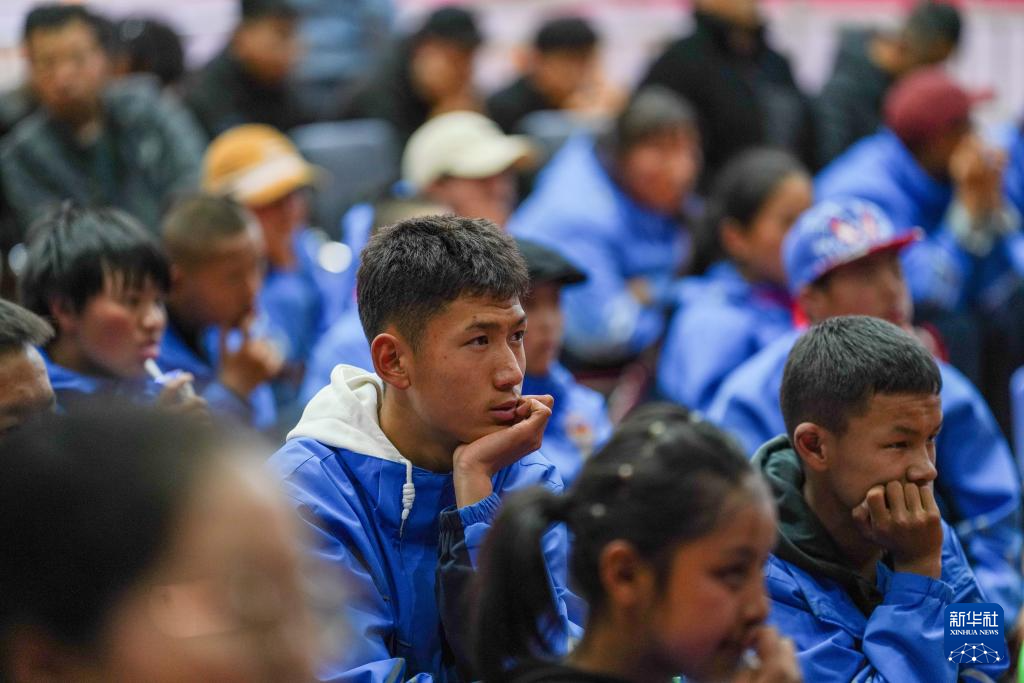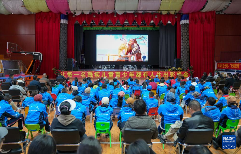 4月17日,西藏山南市特殊教育學(xué)校師生觀看無障礙電影《神筆馬良》。新華社記者 晉美多吉 攝