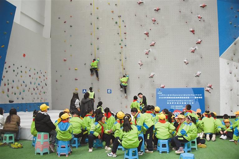 為促進學生全面發(fā)展,近日,由自治區(qū)體育局主辦的“攀巖項目進校園”活動在拉薩市城關區(qū)第二小學舉行?;顒又?,專業(yè)教練講解了攀巖運動的基本知識、技巧以及安全注意事項,學生們在做好保護措施后,分組攀上模擬巖壁,體驗攀登帶來的樂趣。