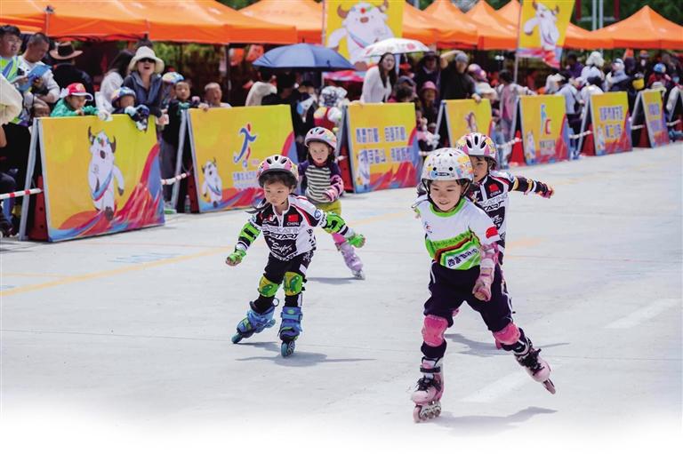今年3歲的格桑怡翁是第一次參加比賽,她告訴記者:“我在家里學了好幾天,媽媽說可以跟很多哥哥姐姐一起學習,我滑了一圈,特別開心。”