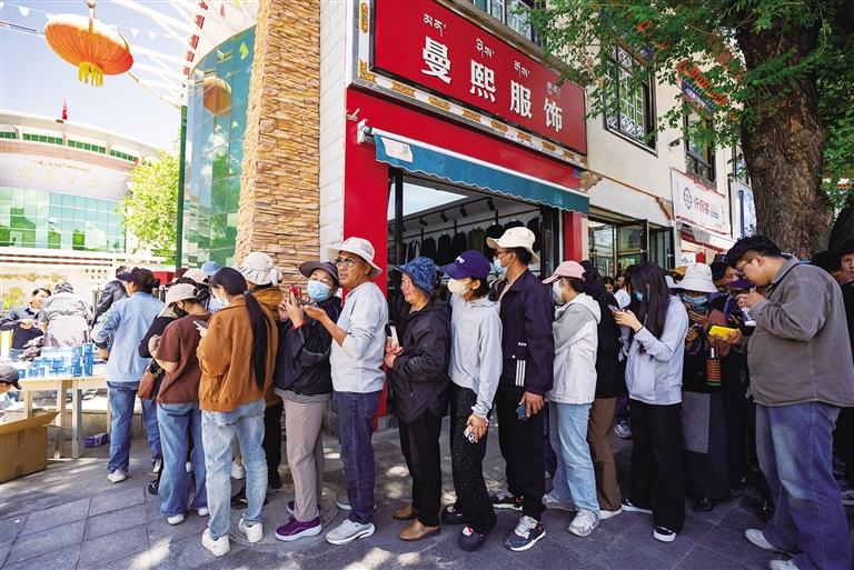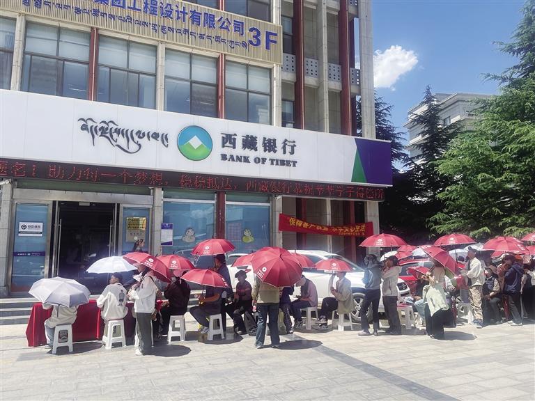 考生和家長(zhǎng)在西藏銀行經(jīng)濟(jì)技術(shù)開(kāi)發(fā)區(qū)支行門前排隊(duì)領(lǐng)取《招生計(jì)劃》。