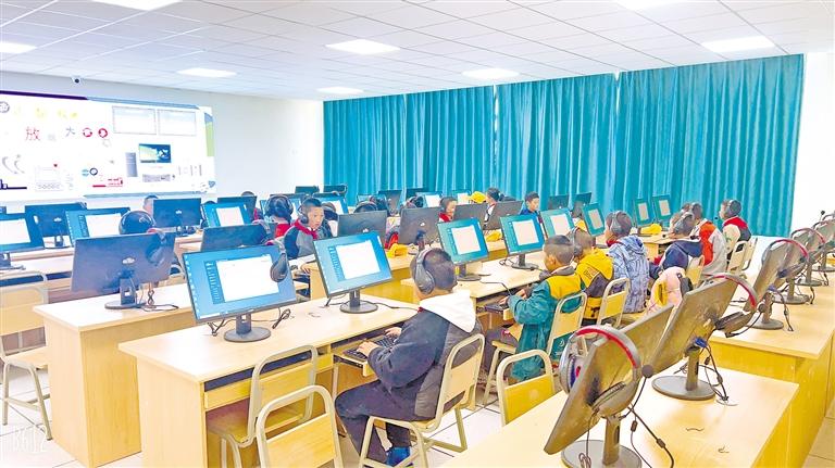2024年,那曲市色尼區(qū)第二小學(xué)學(xué)生在學(xué)習(xí)計(jì)算機(jī)知識(shí)。 那曲市色尼區(qū)委宣傳部供圖