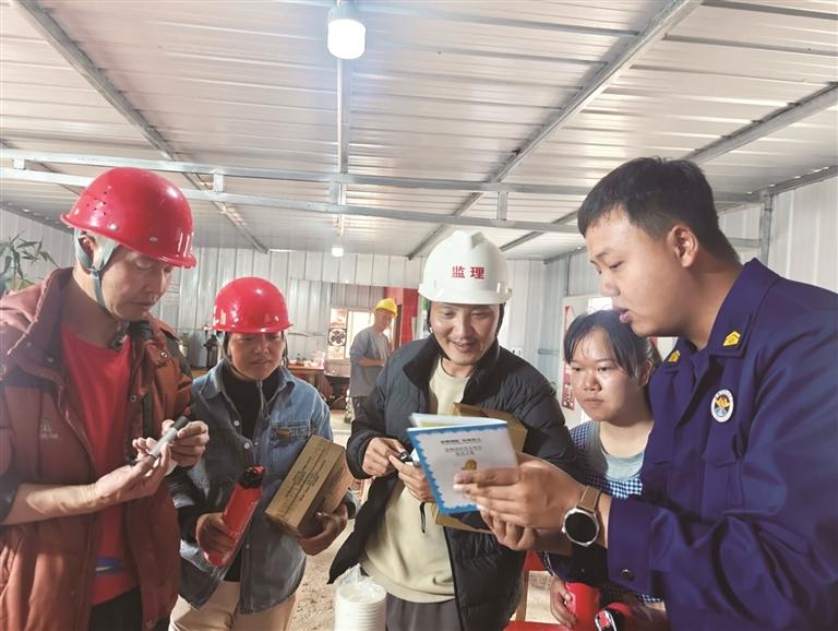 宣講員為工人講解安全常識。圖由拉薩市消防救援支隊提供