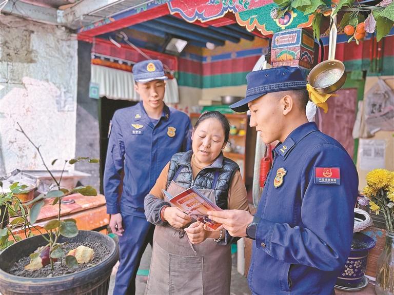 拉薩市消防救援支隊宣傳員深入老城區(qū)“敲門入戶”為居民普及家庭消防安全常識。