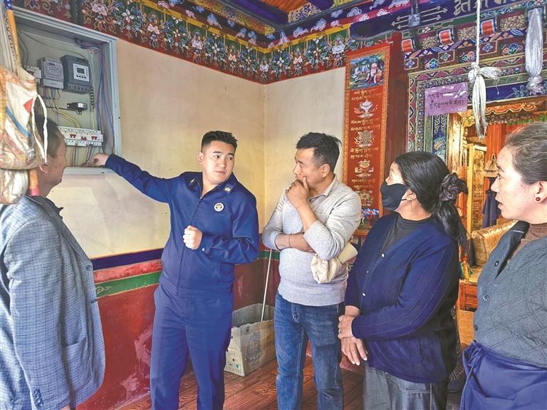 拉薩市消防救援支隊宣傳員深入寺廟為工作人員講解用電安全。通訊員 梁詩敏 攝