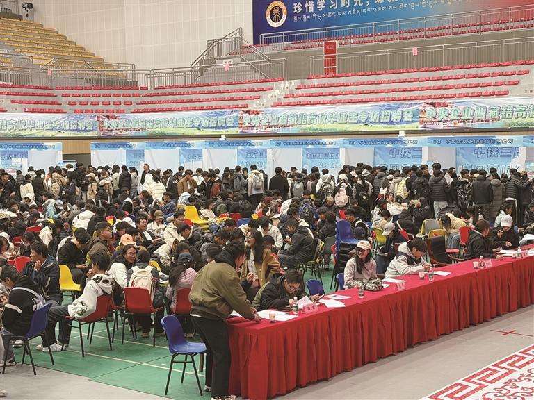 就業(yè)援藏,是保障和改善民生的頭等大事。依托央企就業(yè)援藏機制,西藏自治區(qū)教育廳高校畢業(yè)生就業(yè)指導服務中心聯(lián)合國務院國資委中智集團、自治區(qū)國資委,經(jīng)過多輪磋商座談,精準選定4所高校作為宣講站點,將優(yōu)質(zhì)央企資源直接送到西藏高校畢業(yè)生身邊,組織了此次專場招聘會。