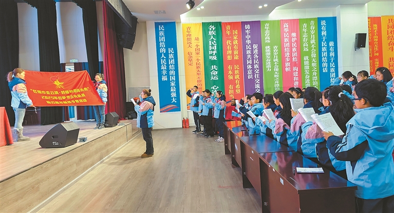 1月4日,拉薩市少年兒童活動中心彩旗飄揚,歌聲嘹亮,“紅領(lǐng)巾走云滇·踐悟紅色新征程”紅色研學(xué)寒假冬令營開營儀式在此舉行。