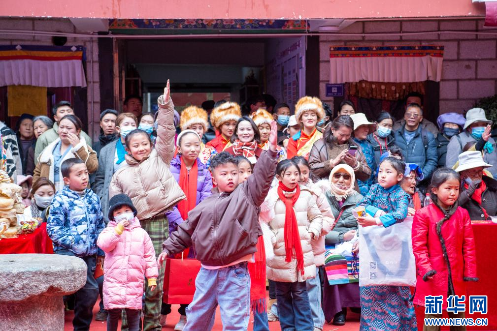 2月23日,小朋友們積極參與游戲互動(dòng)。新華網(wǎng) 旦增努布 攝