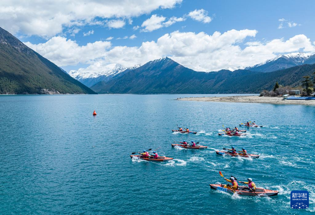 當(dāng)日,2024年巴松措國(guó)際漂流公開(kāi)賽在西藏林芝市工布江達(dá)縣開(kāi)賽。30余支隊(duì)伍在巴松措的湖面上展開(kāi)角逐,完成兩人漂流艇競(jìng)速賽和四人漂流艇排位賽的比拼。