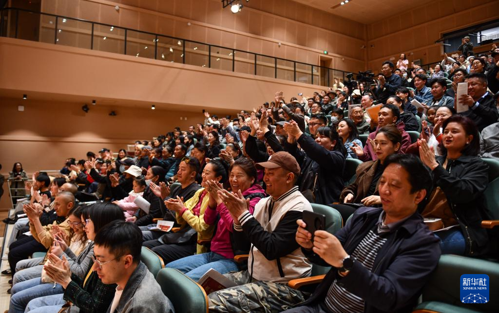 5月20日,西藏傳統(tǒng)民族音樂會《吉祥妙音》演出結(jié)束后,觀眾為演員們精彩的演出鼓掌喝彩。新華社記者 晉美多吉 攝