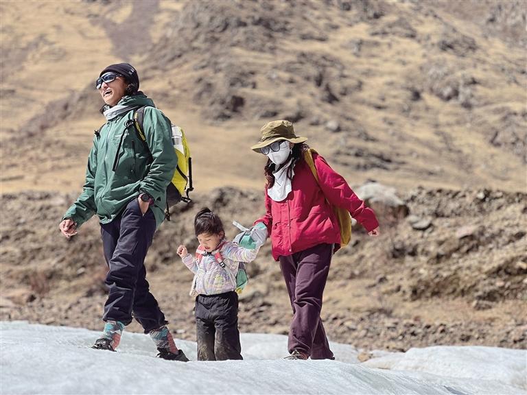 1小時46分后,記者終于登頂南山。在山巔,“徒步搭子”們相互拍照留念,慶祝登頂的喜悅。市民白瑪曲珍說:“我從去年夏天開始帶著女兒徒步。走走停停中,發(fā)現孩子既能接觸大自然又能強身健體,同時戶外活動還讓孩子更加堅韌、開朗,之后便一發(fā)不可收拾。我和女兒都很享受徒步的時光?!?/p>