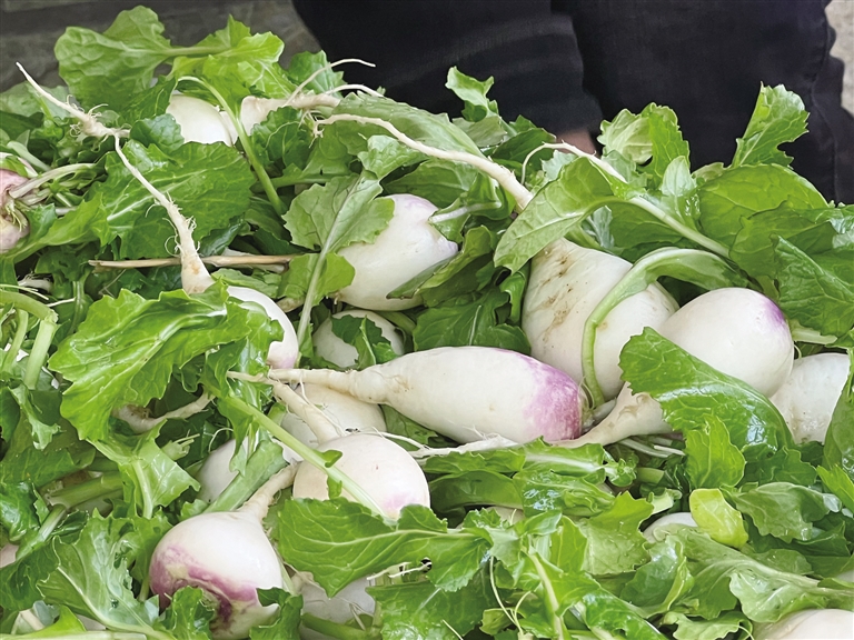 “這些‘妞瑪’都是昨天剛從地里挖的,20元一斤?!睌傊鞔稳噬2颊碇丝鹬械男迈r“妞瑪”,瞬間吸引了不少顧客。次仁桑布家住曲水縣其奴村,據(jù)他介紹,村里家家戶戶每年都會(huì)種植幾畝“妞瑪”,品相好的拿到拉薩銷售,其余部分則作為家畜的營(yíng)養(yǎng)品。5月25日一大早,次仁桑布便帶著自家的“妞瑪”來拉薩銷售,“這些‘妞瑪’全是昨晚洗好、晾好的,一到市場(chǎng)上便成了‘香餑餑’,一上午就能賣掉四五十斤?!?/p>