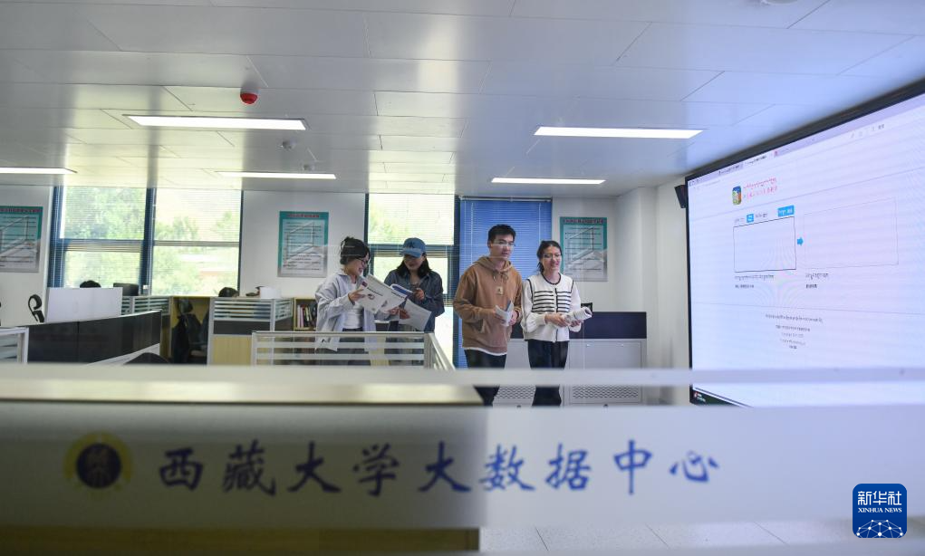 5月30日,尼瑪扎西的學生在西藏大學大數(shù)據(jù)中心結束翻譯軟件測試。新華社記者 晉美多吉 攝