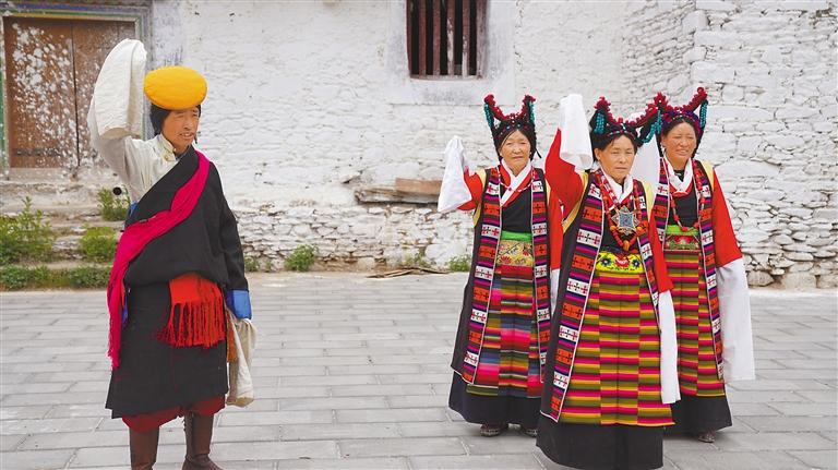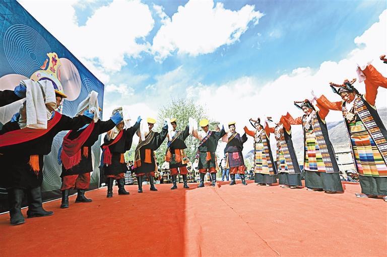 “如今,這支隊伍已發(fā)展到20多名成員,都是當(dāng)?shù)厝罕?。藝術(shù)隊經(jīng)常受邀參加各種大小晚會、重要節(jié)日演出和赴區(qū)內(nèi)外非遺展演等,其影響力和傳播力不斷提升,特別是甲瑪諧欽《和親路》受到廣泛歡迎?!奔赚斷l(xiāng)工作人員德吉卓嘎說。